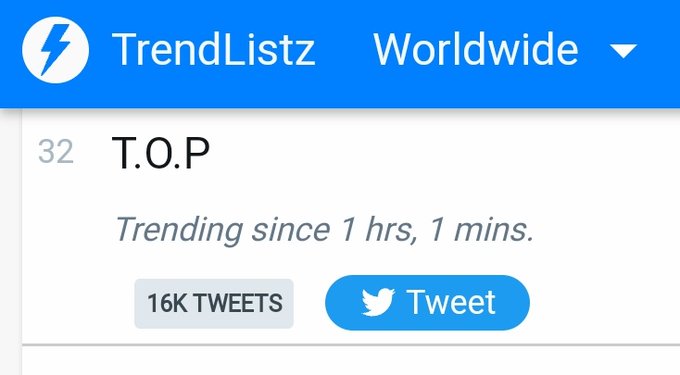 ⚡[UPDATE] T.O.P is trending No. 32 Worldwide real