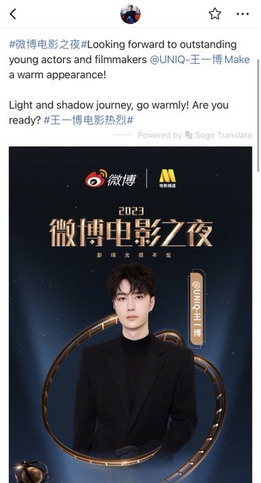 YIBO-OFFICIAL update Young actor #WangYibo appeared