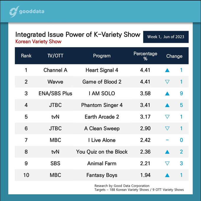 1st week of June 2023 issue power ranking of: • TV/OTT