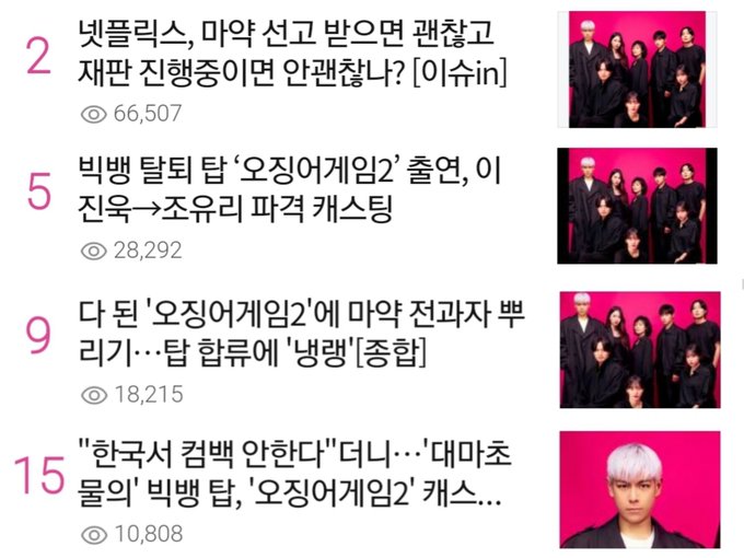 4 articles about TOP's casting in Squid Game 2 are