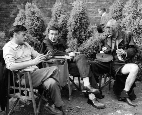 Film director Robert Day photographed with actors Peter