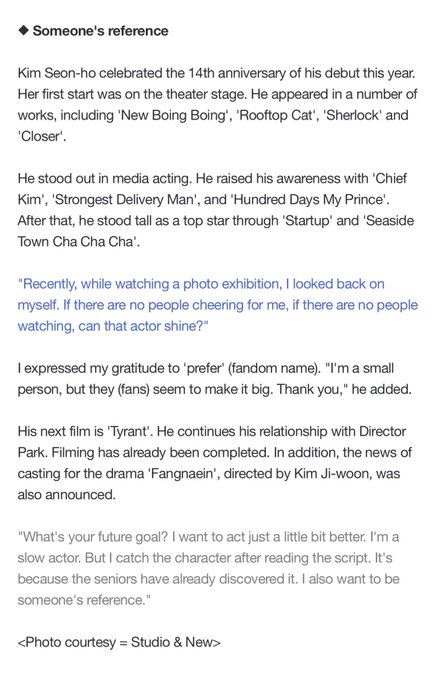 Actor Kim Seonho expressed his gratitude to the actors