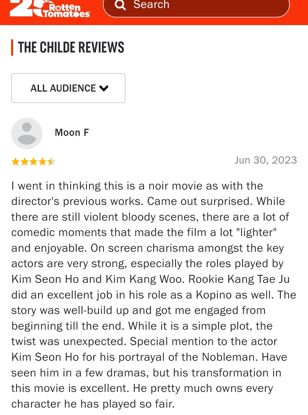"Special mention to the actor Kim Seon Ho for his portrayal